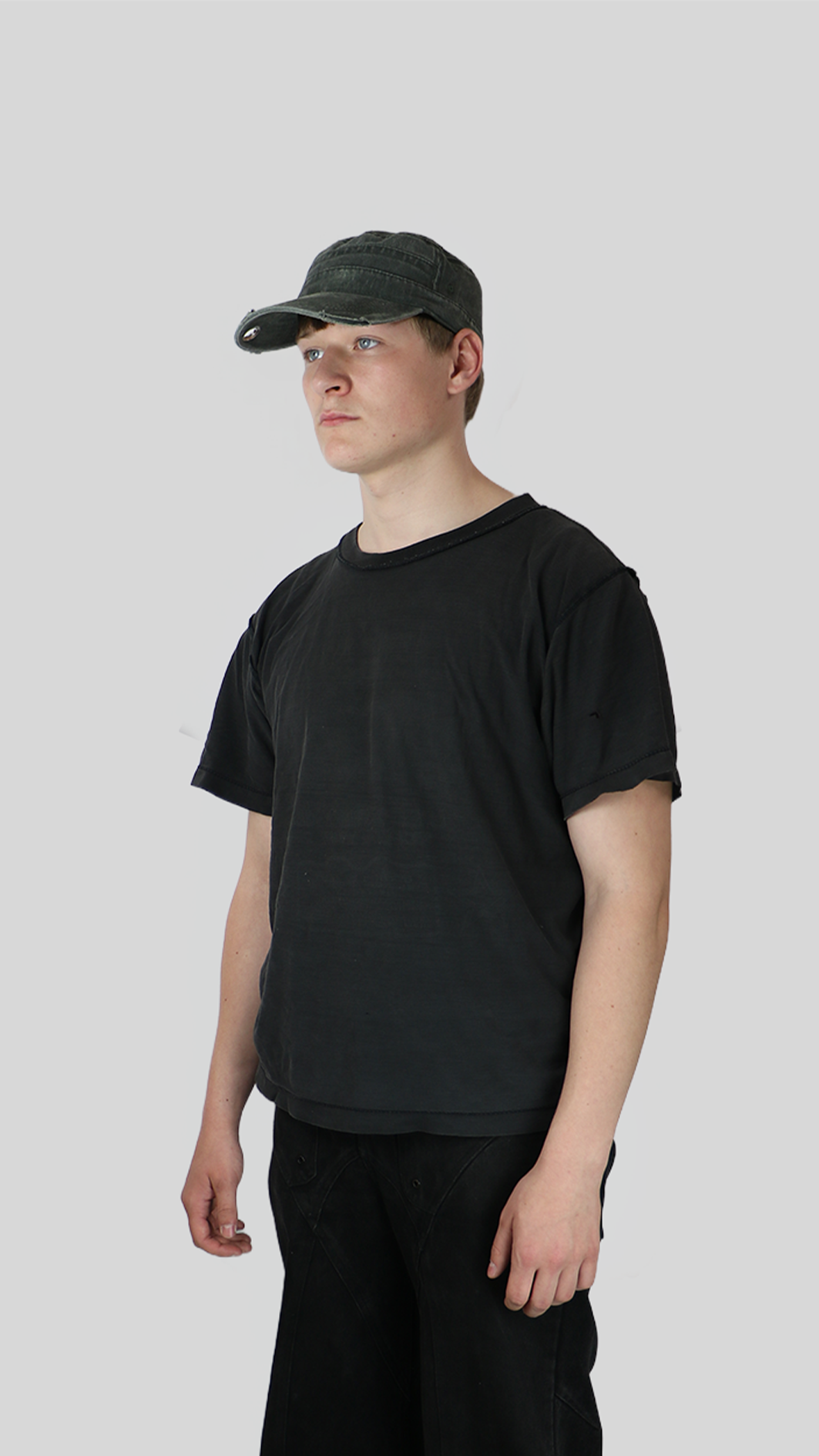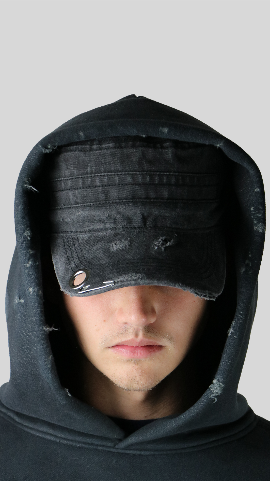 BTIMESTWO - DISTRESSED HANDMADE CAP - BLACK